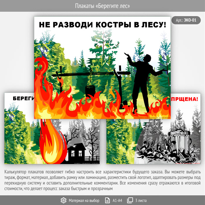 Плакаты «Берегите лес» (ЭКО-01, 3 листа) в Сургуте купить