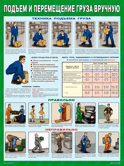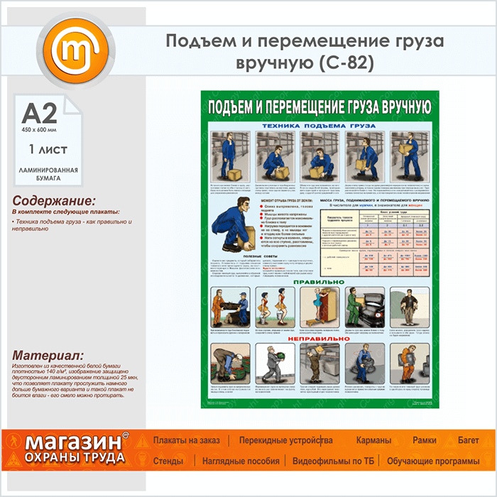 Плакат «Правила перемещения грузов вручную» (С-82, ламинированная бумага, А2, 1 лист) в Сургуте купить