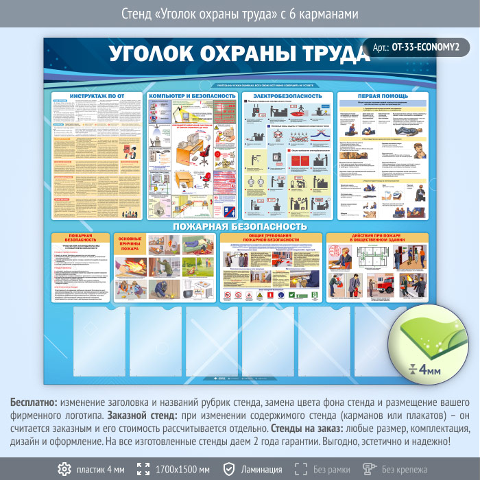 Стенд «Уголок охраны труда» с 6 карманами (OT-33-ECONOMY2) в Сургуте купить