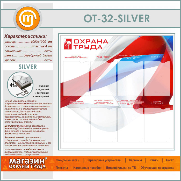 Стенд «Охрана труда» с 8 карманами (OT-32-SILVER) в Сургуте купить