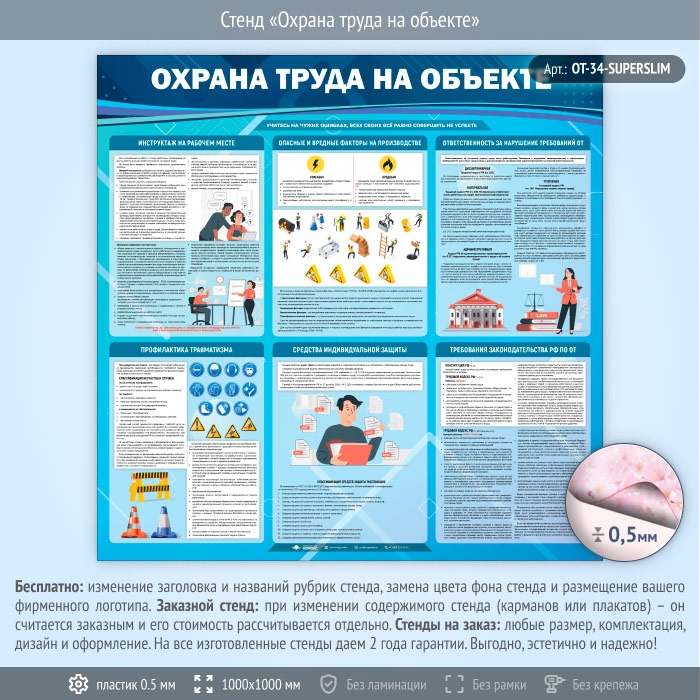 Стенд «Охрана труда на объекте» (OT-34-SUPERSLIM) в Сургуте купить