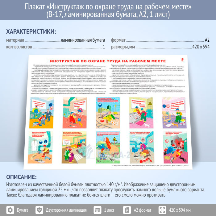 Плакат «Инструктаж по охране труда на рабочем месте» (В-17, ламинированная бумага, А2, 1 лист) в Сургуте купить