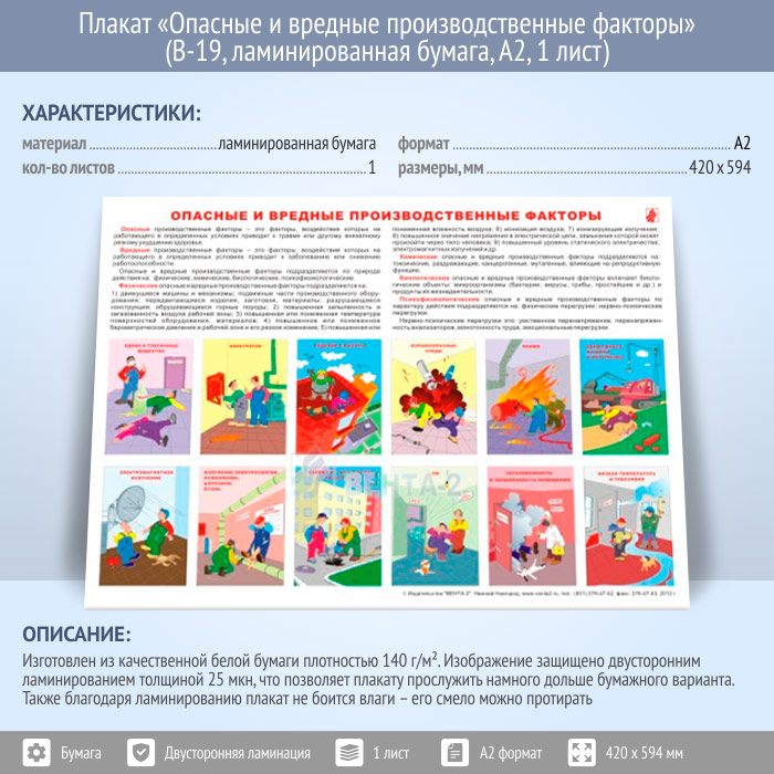 Плакат «Опасные и вредные производственные факторы» (В-19, ламинированная бумага, А2, 1 лист) в Сургуте купить