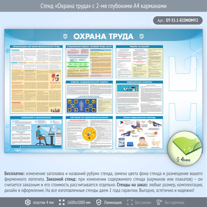 Стенд «Охрана труда» с 2-мя глубокими А4 карманами (OT-35.1-ECONOMY2) в Сургуте купить