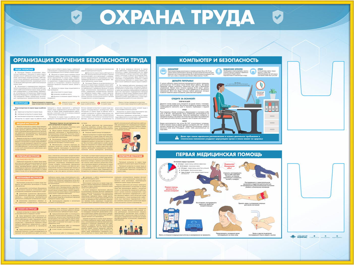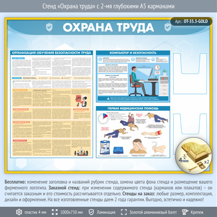 Стенд «Охрана труда» с 2-мя глубокими А5 карманами (OT-35.3-GOLD) в Сургуте купить