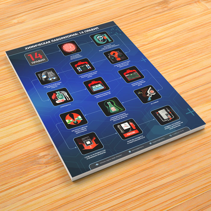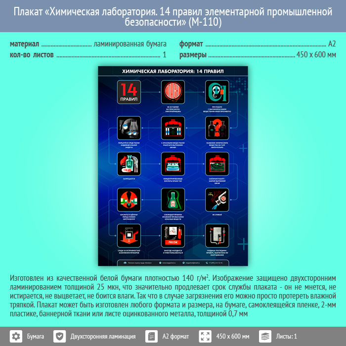 Плакат «Химическая лаборатория. 14 правил элементарной промышленной безопасности» (М-110, ламинированная бумага, А2, 1 лист) в Сургуте купить