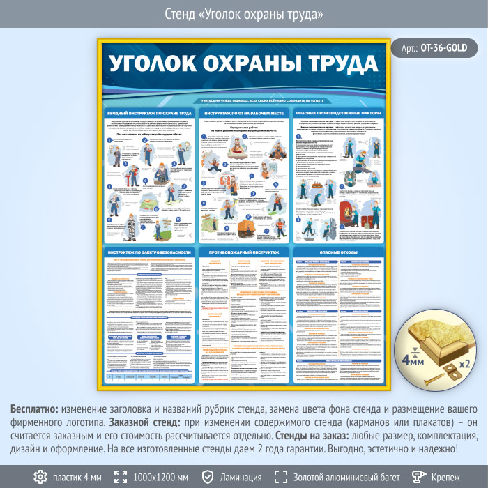 Стенд «Уголок охраны труда» (OT-36-GOLD) в Сургуте купить