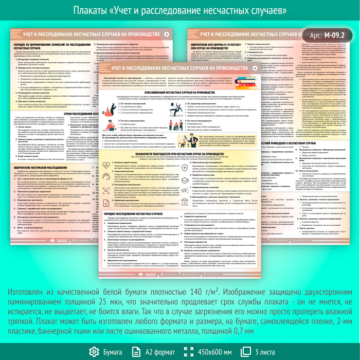 Плакаты «Учет и расследование несчастных случаев» (М-09.2, ламинированная бумага, А2, 3 листа) в Сургуте купить