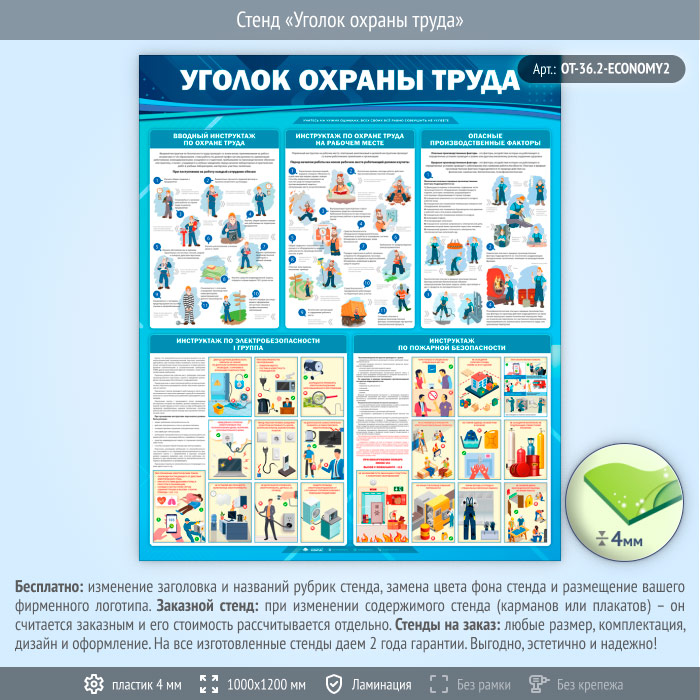 Стенд «Уголок охраны труда» (OT-36.2-ECONOMY2) в Сургуте купить
