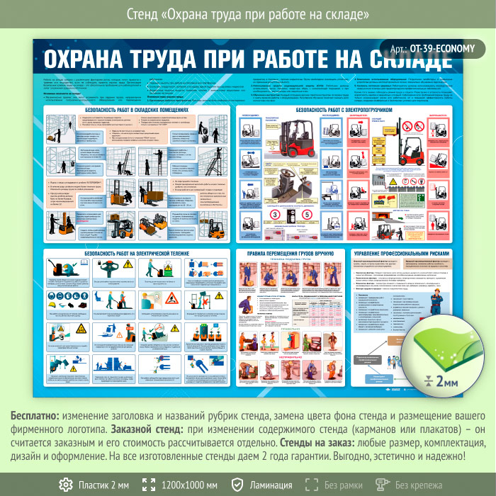 Стенд «Охрана труда при работе на складе» (OT-39-ECONOMY) в Сургуте купить