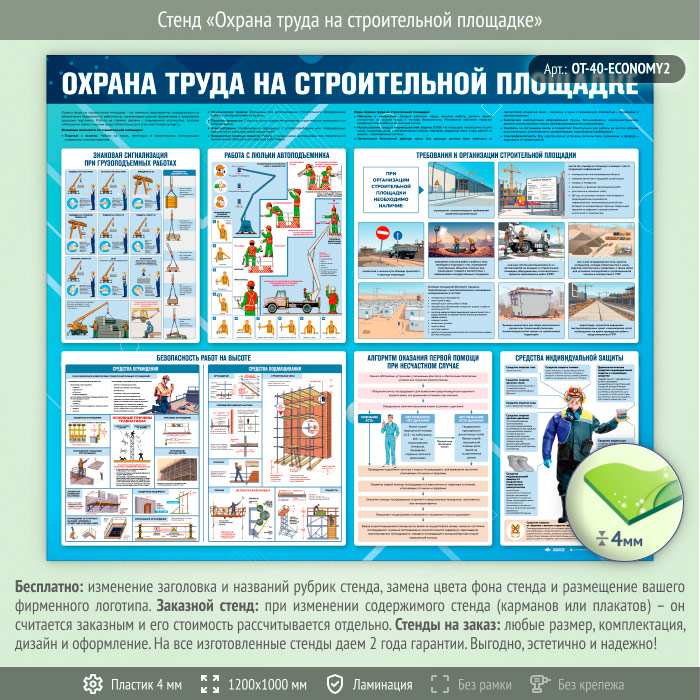 Стенд «Охрана труда на строительной площадке» (OT-40-ECONOMY2) в Сургуте купить