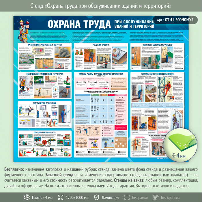 Стенд «Охрана труда при обслуживании зданий и территорий» (OT-41-ECONOMY2) в Сургуте купить