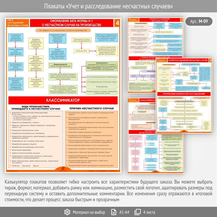 Плакаты «Учет и расследование несчастных случаев» (М-09, 4 листа) в Сургуте купить