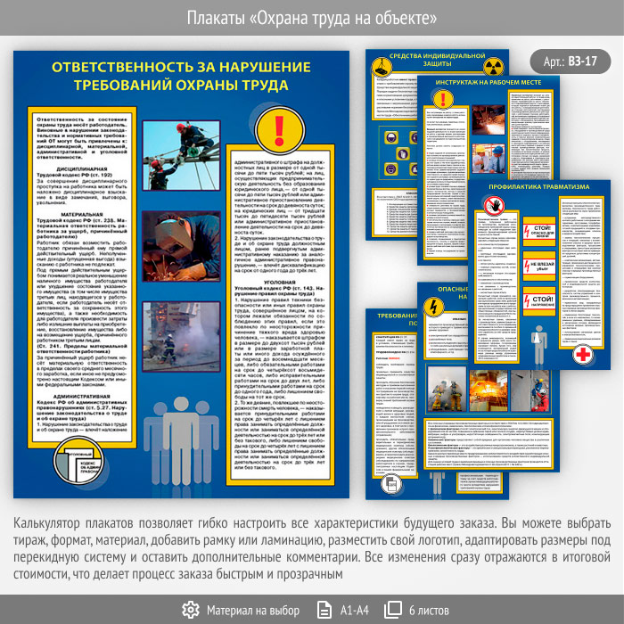 Плакаты «Охрана труда на объекте» (ВЗ-17, 6 листов) в Сургуте купить