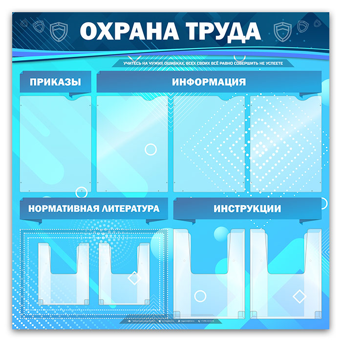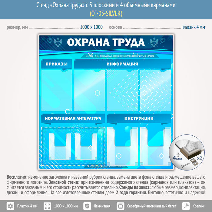 Стенд «Охрана труда» с 4 плоскими и 4 объемными карманами (OT-03-SILVER) в Сургуте купить