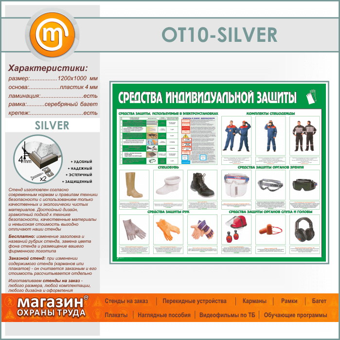 Стенд «Средства индивидуальной защиты» (OT-10-SILVER) в Сургуте купить