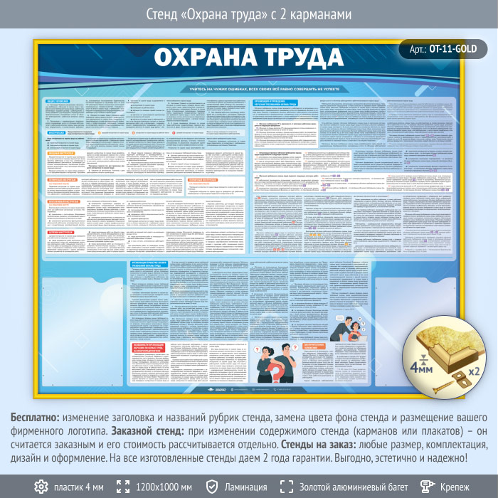Стенд «Охрана труда» с 2 карманами (OT-11-GOLD) в Сургуте купить