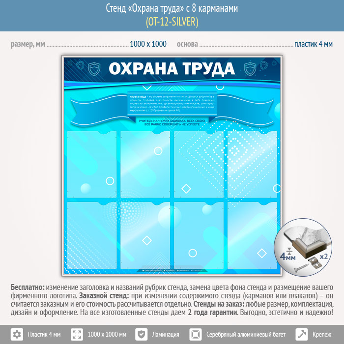 Стенд «Охрана труда» с 8 карманами (OT-12-SILVER) в Сургуте купить