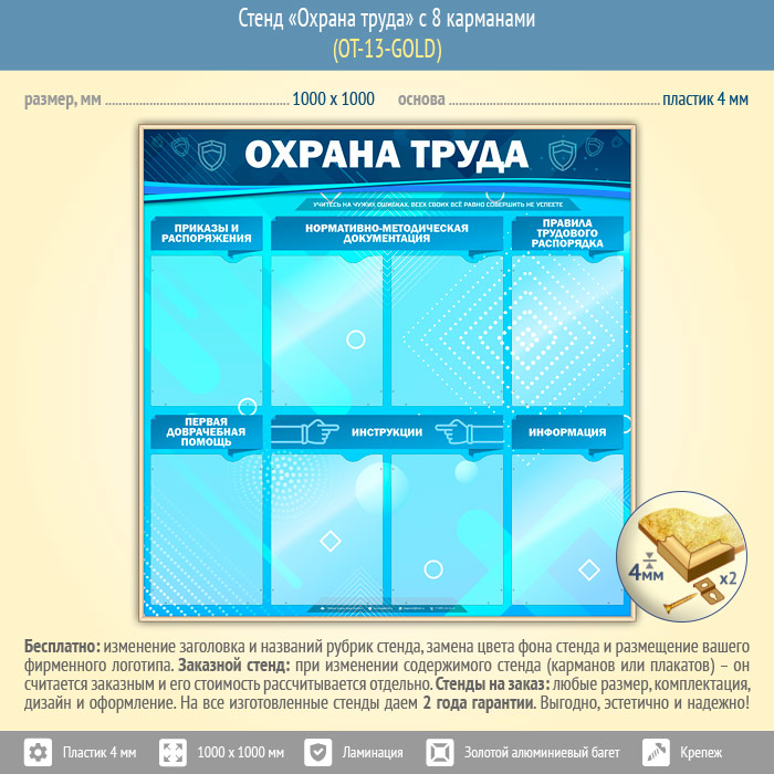Стенд «Охрана труда» с 8 карманами (OT-13-GOLD) в Сургуте купить