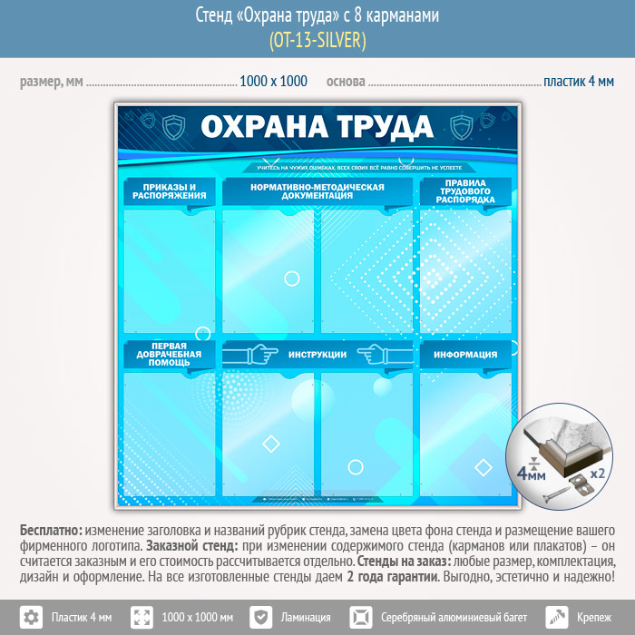 Стенд «Охрана труда» с 8 карманами (OT-13-SILVER) в Сургуте купить