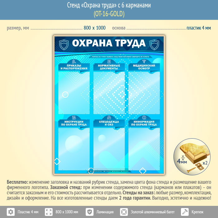 Стенд «Охрана труда» с 6 карманами (OT-16-GOLD) в Сургуте купить