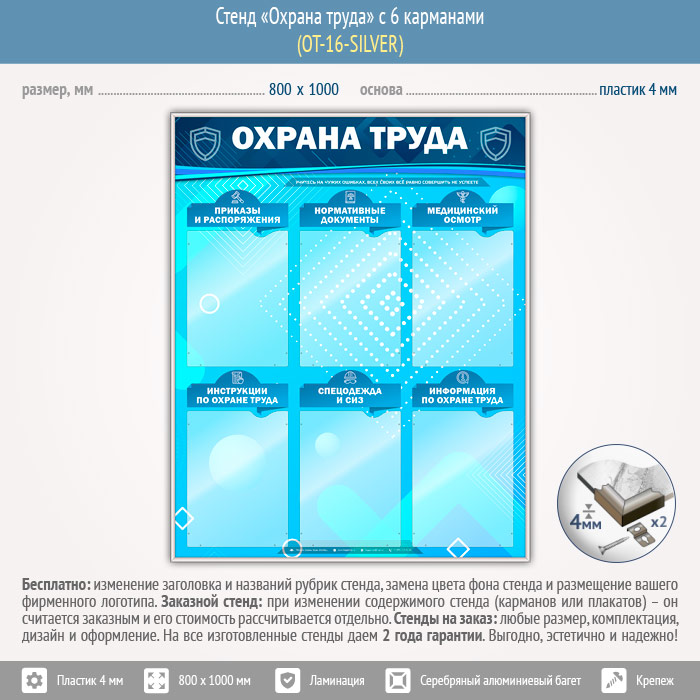 Стенд «Охрана труда» с 6 карманами (OT-16-SILVER) в Сургуте купить