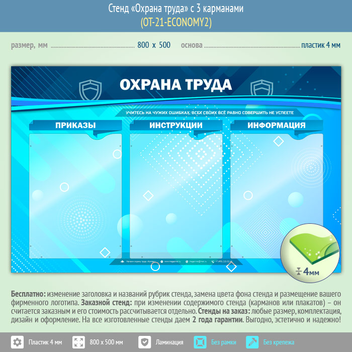 Стенд «Охрана труда» с 3 карманами (OT-21-ECONOMY2) в Сургуте купить