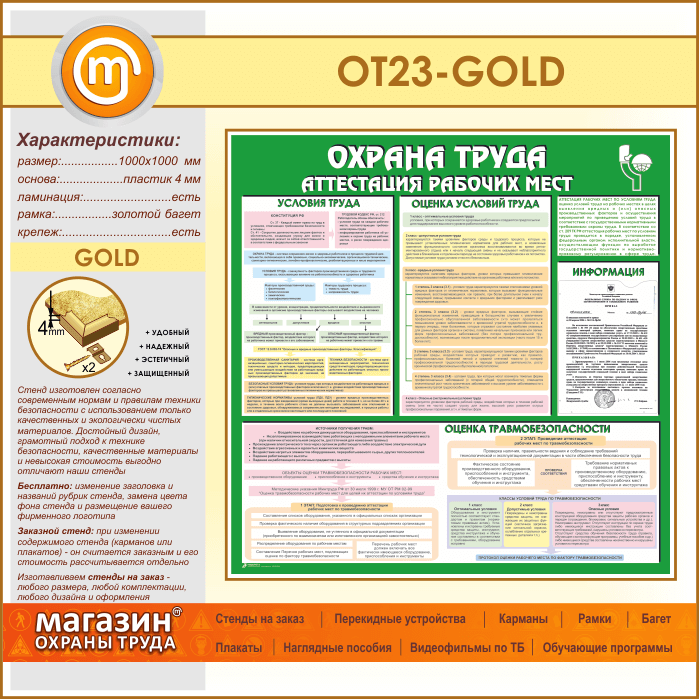 Стенд «Охрана труда. Аттестация рабочих мест» с карманом (OT-23-GOLD) в Сургуте купить