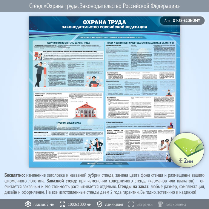 Стенд «Охрана труда. Законодательство Российской Федерации» (OT-28-ECONOMY) в Сургуте купить
