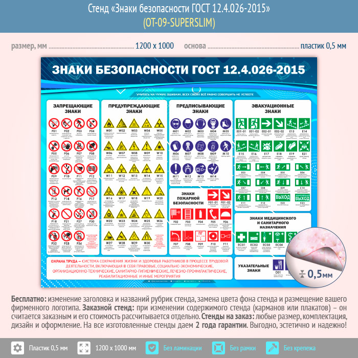 Стенд «Знаки безопасности ГОСТ 12.4.026-2015» (OT-09-SUPERSLIM) в Сургуте купить