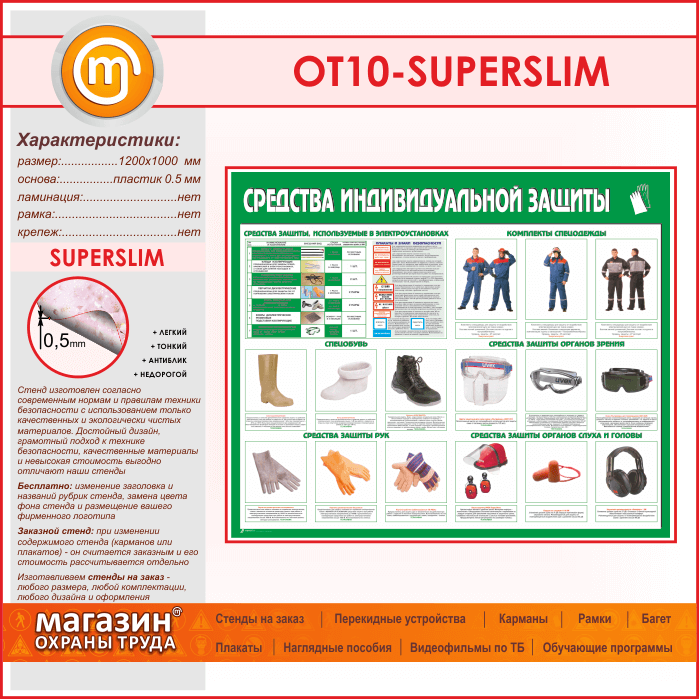 Стенд «Средства индивидуальной защиты» (OT-10-SUPERSLIM) в Сургуте купить