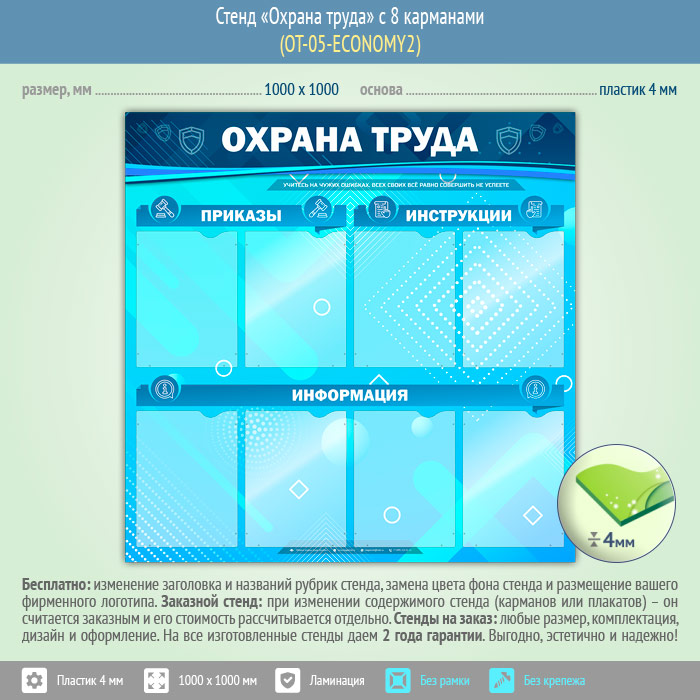 Стенд «Охрана труда» с 8 карманами (OT-05-ECONOMY2) в Сургуте купить