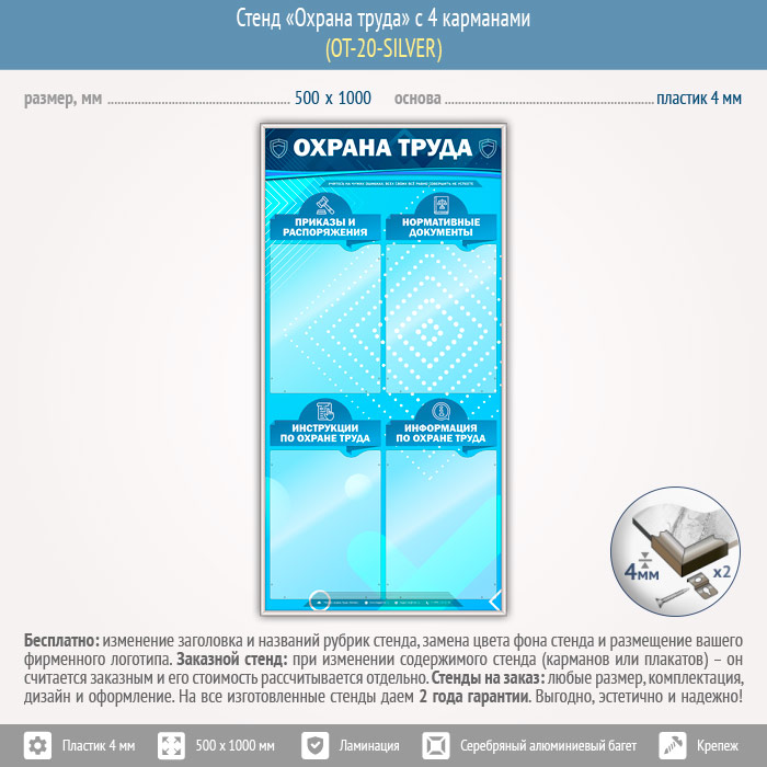 Стенд «Охрана труда» с 4 карманами (OT-20-SILVER) в Сургуте купить