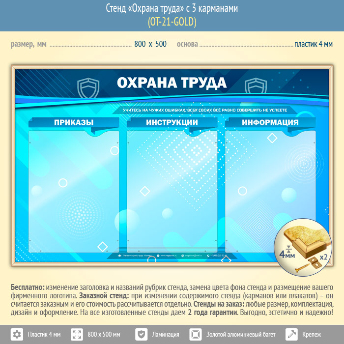 Стенд «Охрана труда» с 3 карманами (OT-21-GOLD) в Сургуте купить