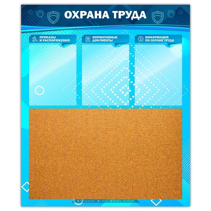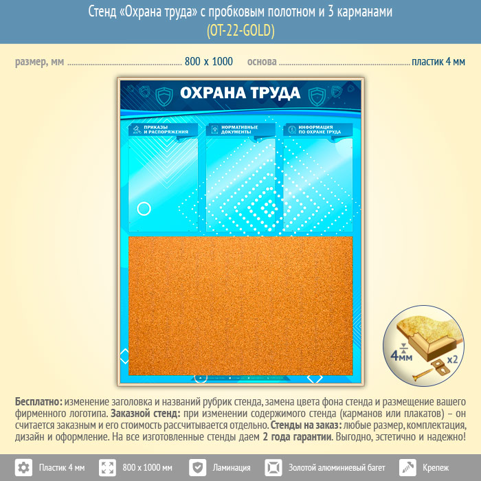 Стенд «Охрана труда» с пробковым полотном и 3 карманами (OT-22-GOLD) в Сургуте купить
