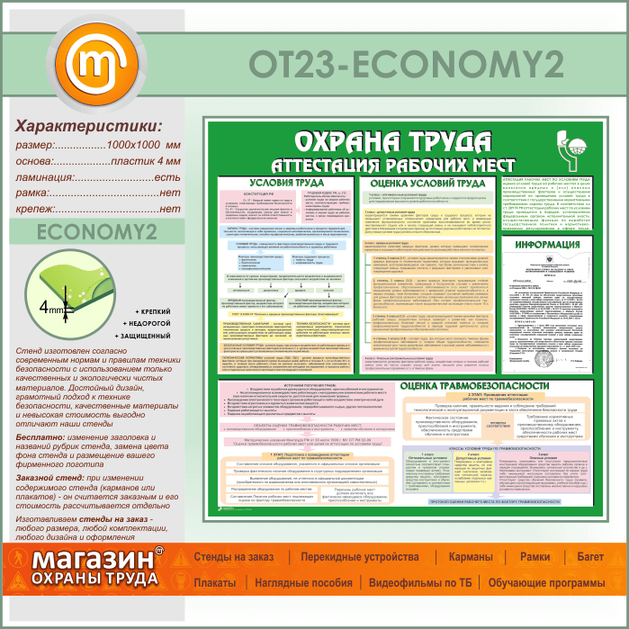 Стенд «Охрана труда. Аттестация рабочих мест» с карманом (OT-23-ECONOMY2) в Сургуте купить