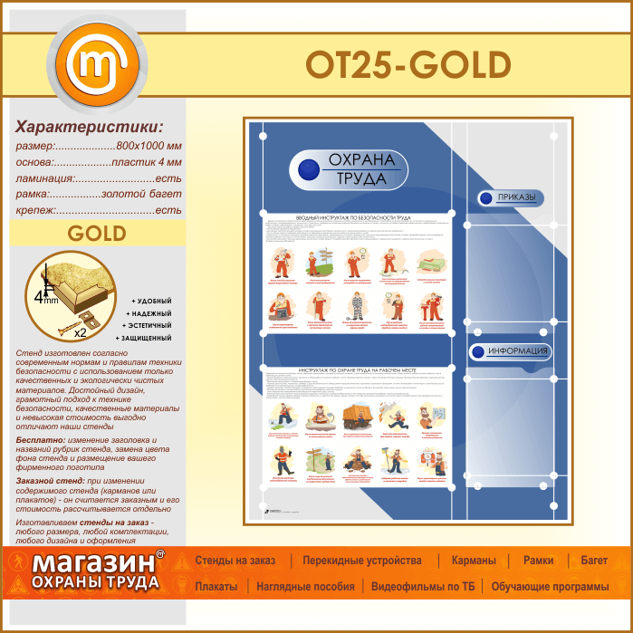 Стенд «Охрана труда» с 2 плоскими карманами (OT-25-GOLD) в Сургуте купить