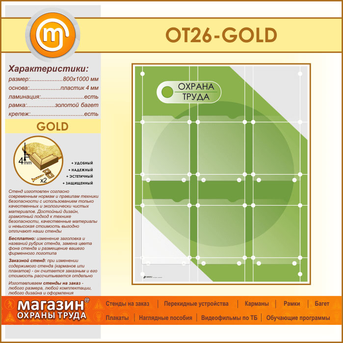 Стенд «Охрана труда» с 6 плоскими карманами (OT-26-GOLD) в Сургуте купить