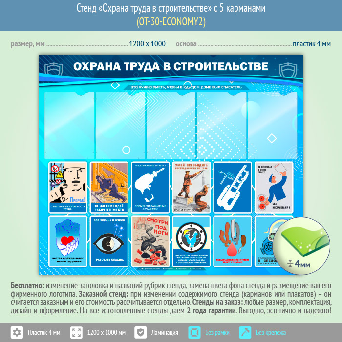 Стенд «Охрана труда в строительстве» с 5 карманами (OT-30-ECONOMY2) в Сургуте купить
