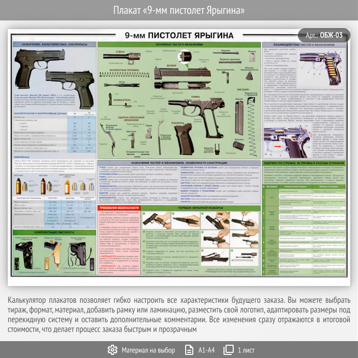 Плакат «9-мм пистолет Ярыгина» (ОБЖ-03, 1 лист) в Сургуте купить