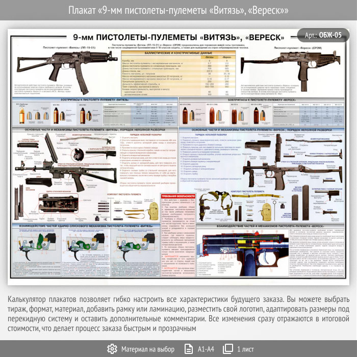Плакат «9-мм пистолеты-пулеметы «Витязь», «Вереск»» (ОБЖ-05, 1 лист) в Сургуте купить