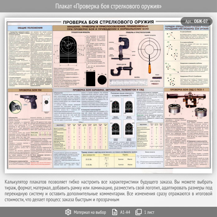 Плакат «Проверка боя стрелкового оружия» (ОБЖ-07, 1 лист) в Сургуте купить