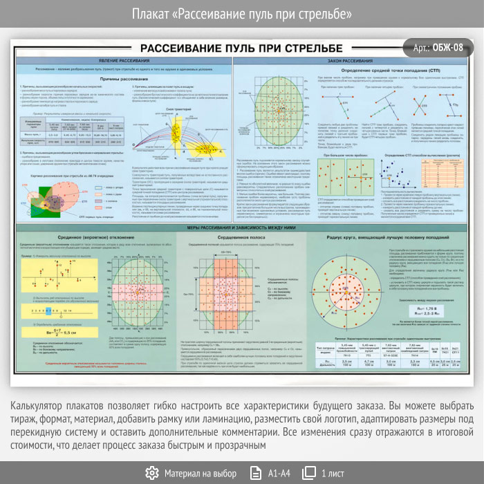 Плакат «Рассеивание пуль при стрельбе» (ОБЖ-08, 1 лист) в Сургуте купить