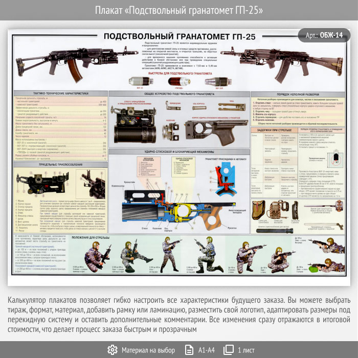 Плакат «Подствольный гранатомет ГП-25» (ОБЖ-14, 1 лист) в Сургуте купить