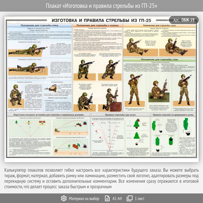 Плакат «Изготовка и правила стрельбы из ГП-25» (ОБЖ-19, 1 лист) в Сургуте купить