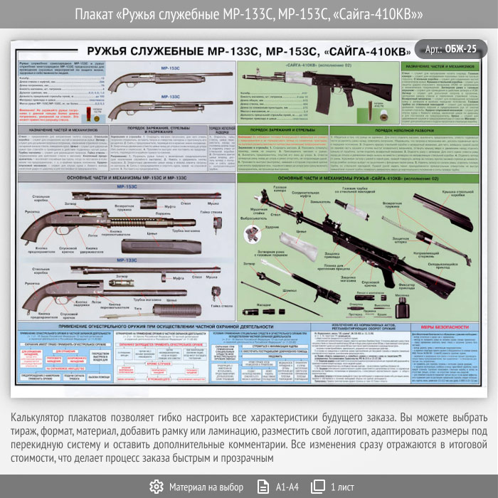 Плакат «Ружья служебные МР-133С, МР-153С, «Сайга-410КВ»» (ОБЖ-25, 1 лист) в Сургуте купить
