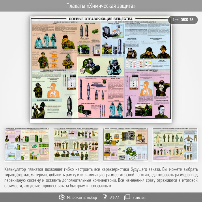 Плакаты «Химическая защита» (ОБЖ-26, 5 листа) в Сургуте купить