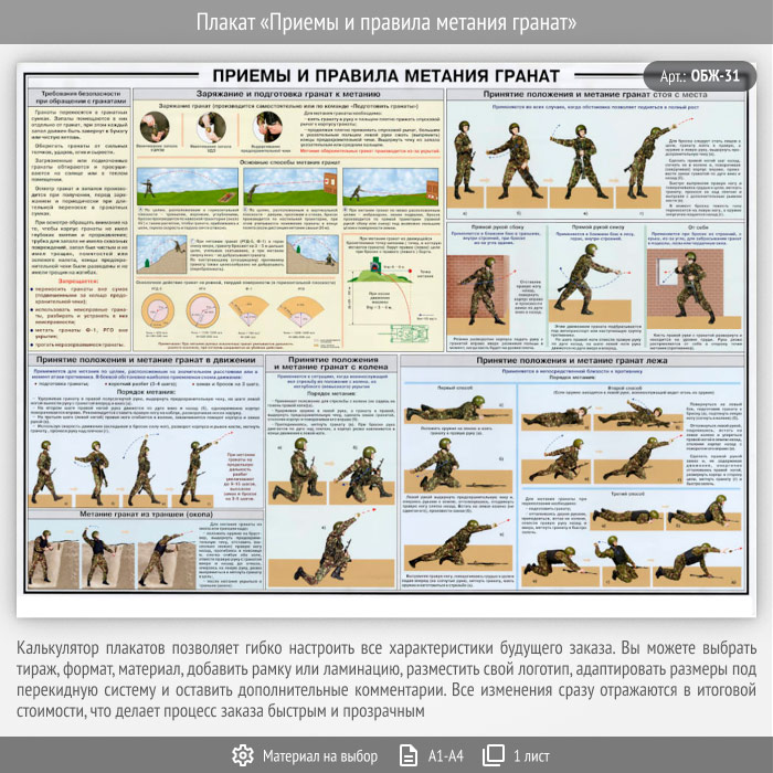 Плакат «Приемы и правила метания гранат» (ОБЖ-31, 1 лист) в Сургуте купить