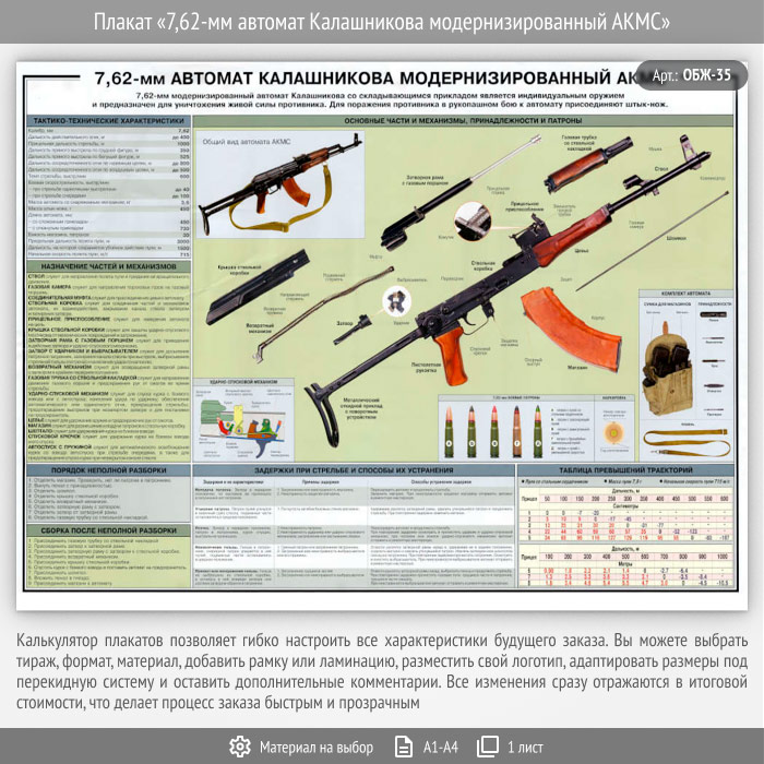 Плакат «7,62-мм автомат Калашникова модернизированный АКМС» (ОБЖ-35, 1 лист) в Сургуте купить