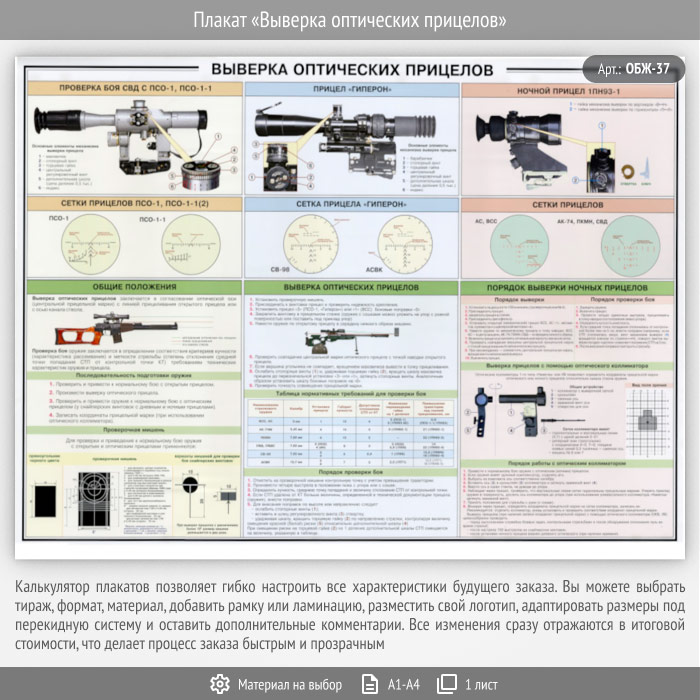 Плакат «Выверка оптических прицелов» (ОБЖ-37, 1 лист) в Сургуте купить